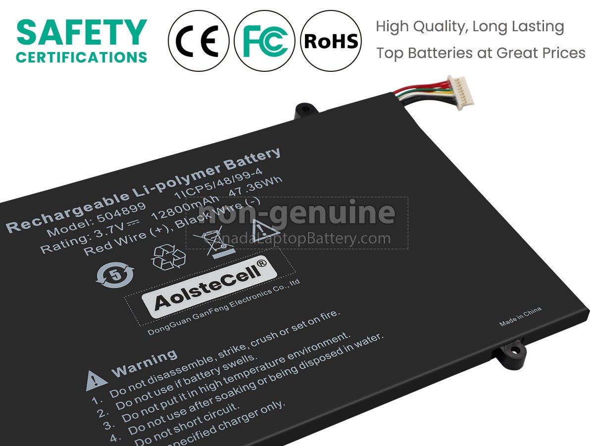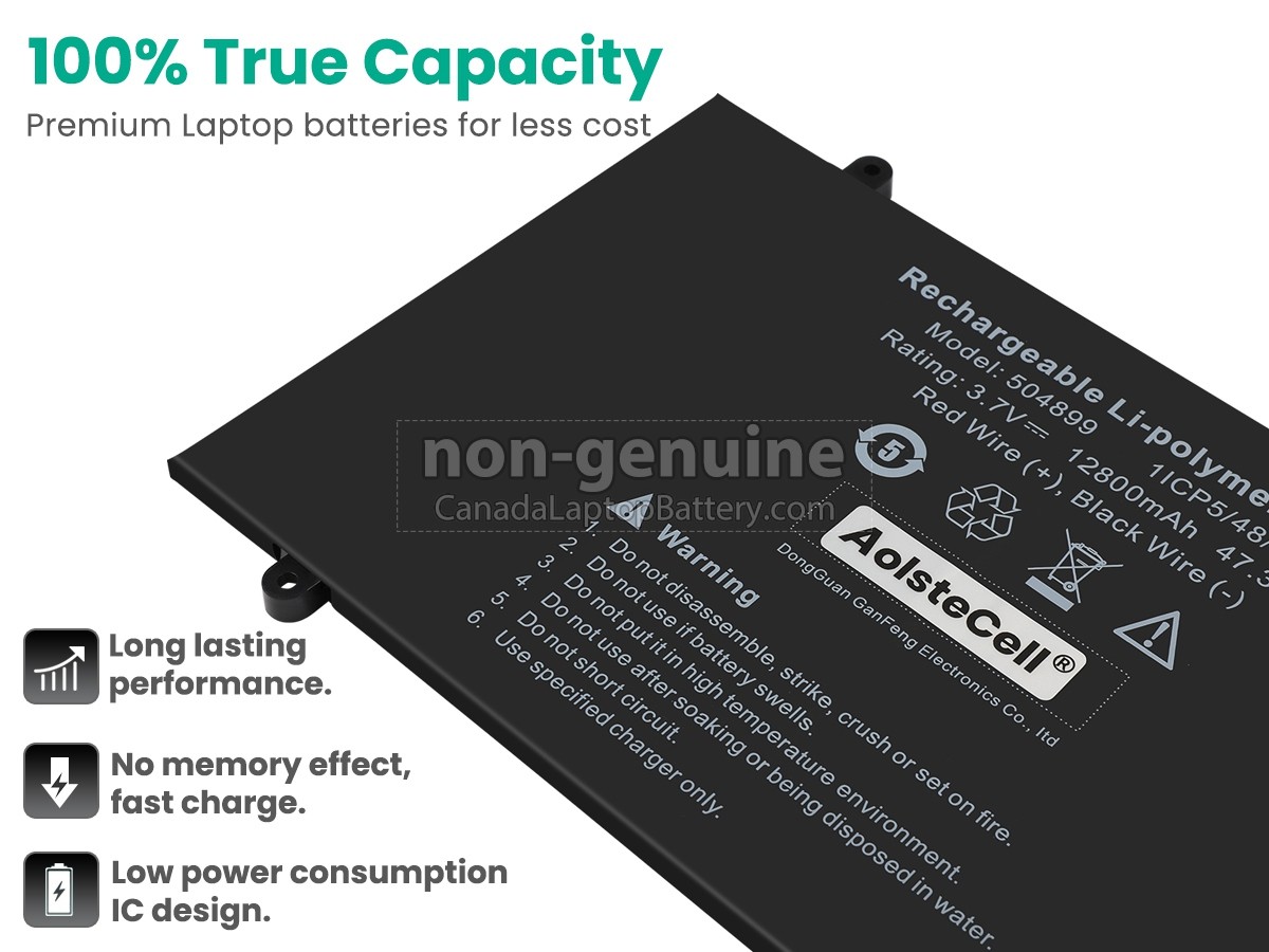 Our requirements for safety performance are extremely strict, and each replacement battery for AolsteCell 504899 has gone through more than one hundred strict tests on the quality and safety. More importantly, our AolsteCell 504899 laptop batteries are sold directly on the network, without other agents profits included. Thus, the AolsteCell 504899 battery price that you see on our website will be 20-50% lower than our competitors in general. If you find a cheaper AolsteCell 504899 replacement battery on the competitive website, please let us know that and we will solve this problem for you.