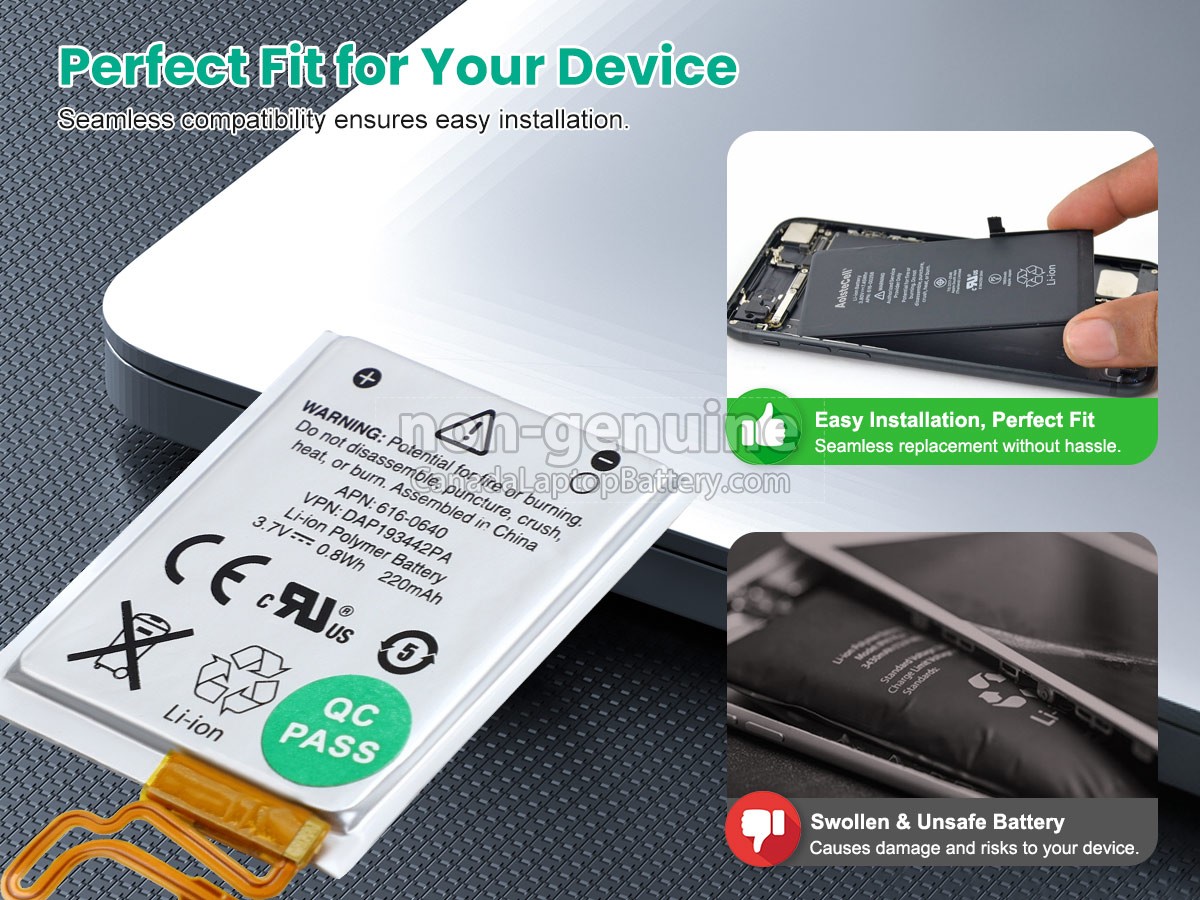 Bring your original equipment back to life with high-quality Apple IPOD NANO 7TH GEN battery - Made of high-quality materials, top grade battery cells and packed with safety features.
