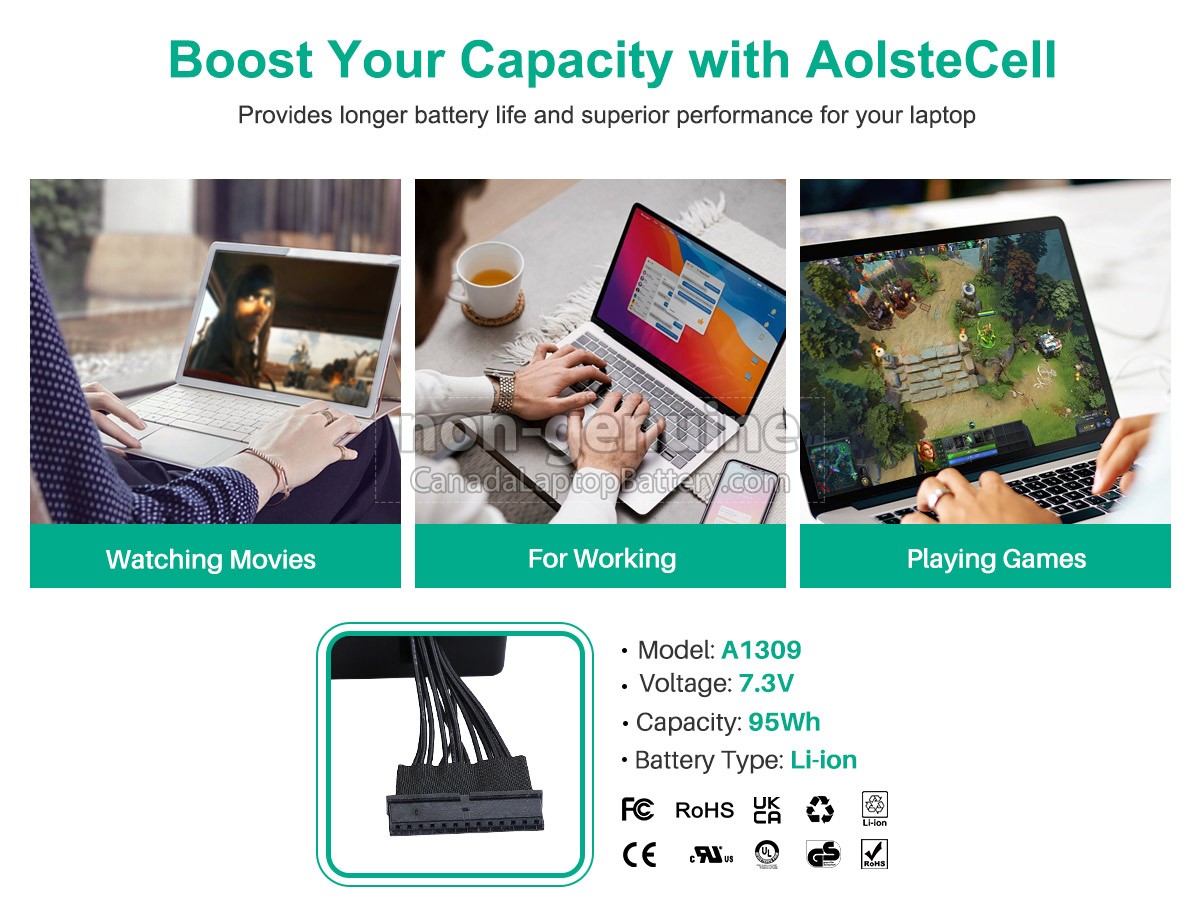 Our requirements for safety performance are extremely strict, and each replacement battery for Apple MacBook Pro Core 2 DUO 2.8GHZ 17 inch A1297(EMC 2329*) has gone through more than one hundred strict tests on the quality and safety. More importantly, our Apple MacBook Pro Core 2 DUO 2.8GHZ 17 inch A1297(EMC 2329*) laptop batteries are sold directly on the network, without other agents profits included. Thus, the Apple MacBook Pro Core 2 DUO 2.8GHZ 17 inch A1297(EMC 2329*) battery price that you see on our website will be 20-50% lower than our competitors in general. If you find a cheaper Apple MacBook Pro Core 2 DUO 2.8GHZ 17 inch A1297(EMC 2329*) replacement battery on the competitive website, please let us know that and we will solve this problem for you.