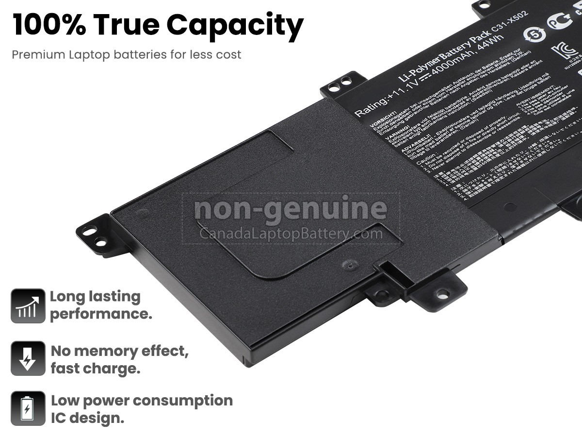 The new Asus 0B200-00320100 battery is made with Grade A battery cells and 100% compatible with the original battery specifications. This battery is not compatible with the battery voltage 10.8V and 11.1V.