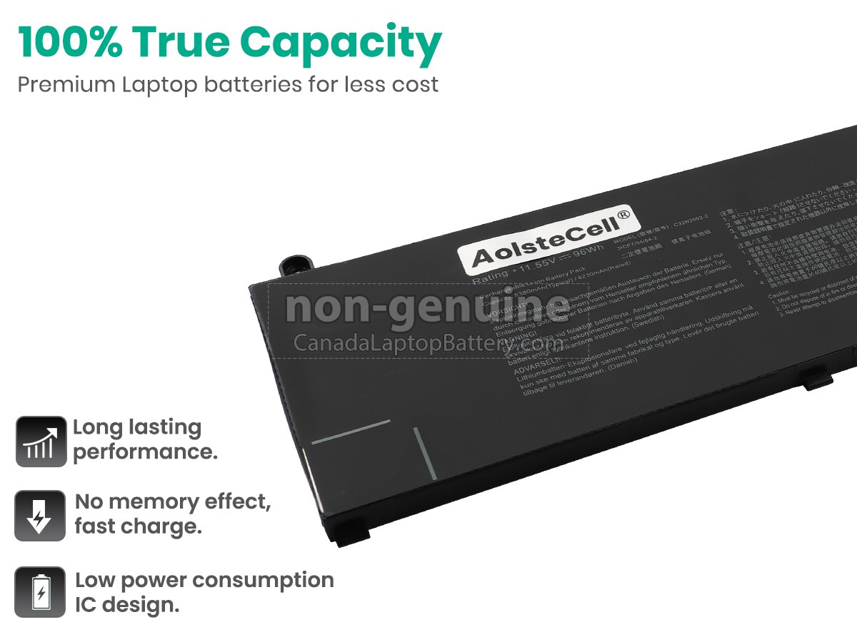 Our requirements for safety performance are extremely strict, and each replacement battery for Asus ZenBook Pro 15 Flip OLED UP6502ZD-OLED-M731X has gone through more than one hundred strict tests on the quality and safety. More importantly, our Asus ZenBook Pro 15 Flip OLED UP6502ZD-OLED-M731X laptop batteries are sold directly on the network, without other agents profits included. Thus, the Asus ZenBook Pro 15 Flip OLED UP6502ZD-OLED-M731X battery price that you see on our website will be 20-50% lower than our competitors in general. If you find a cheaper Asus ZenBook Pro 15 Flip OLED UP6502ZD-OLED-M731X replacement battery on the competitive website, please let us know that and we will solve this problem for you.