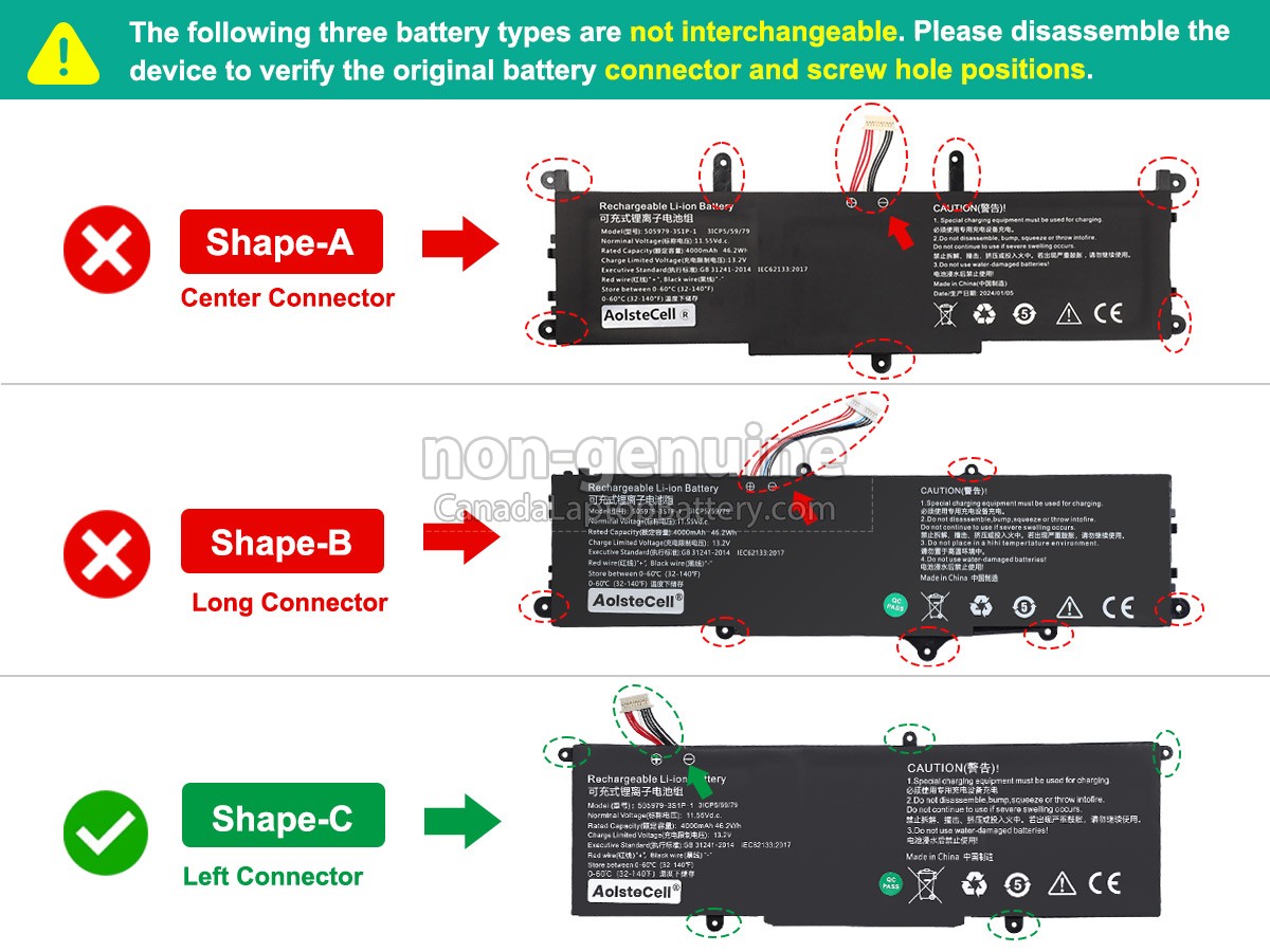 Please check the model and shape of your CHUWI 505979-3S1P-1 original battery(use Ctrl + F to search the model). Make sure you get the correct battery.