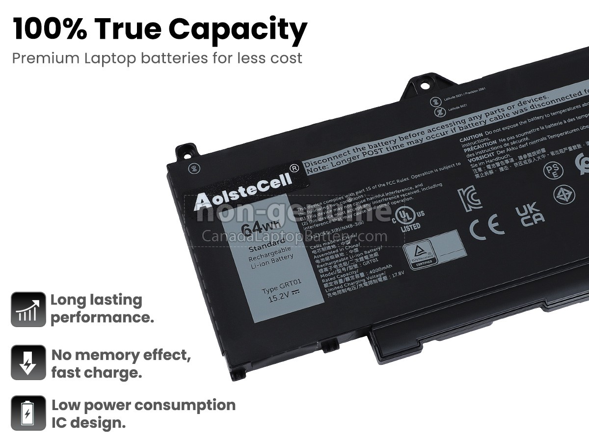 The new Dell Latitude 5421 battery is made with Grade A battery cells and 100% compatible with the original battery specifications. This battery is not compatible with the battery voltage 15.2V.