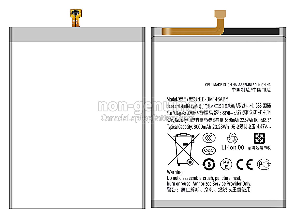 We offer 12 months warranty on the replacement Samsung EB-BM146ABY battery! During this period, if your battery fails due to quality problems, we will replace your battery with a new one.