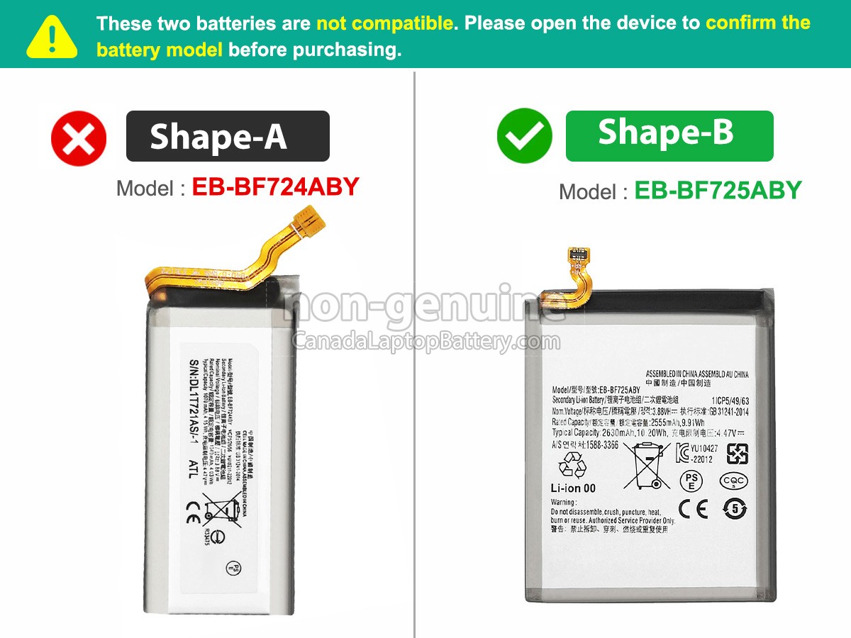 Please check the model and shape of your Samsung GALAXY Z FLIP4 SM-F721W original battery(use Ctrl + F to search the model). Make sure you get the correct battery.