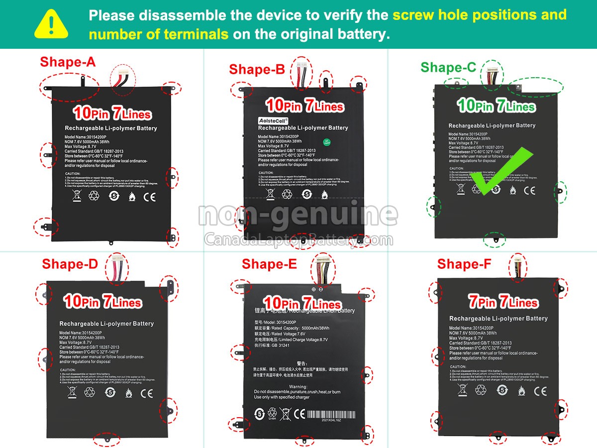 Please check the model and shape of your Teclast F7 PRO original battery(use Ctrl + F to search the model). Make sure you get the correct battery.